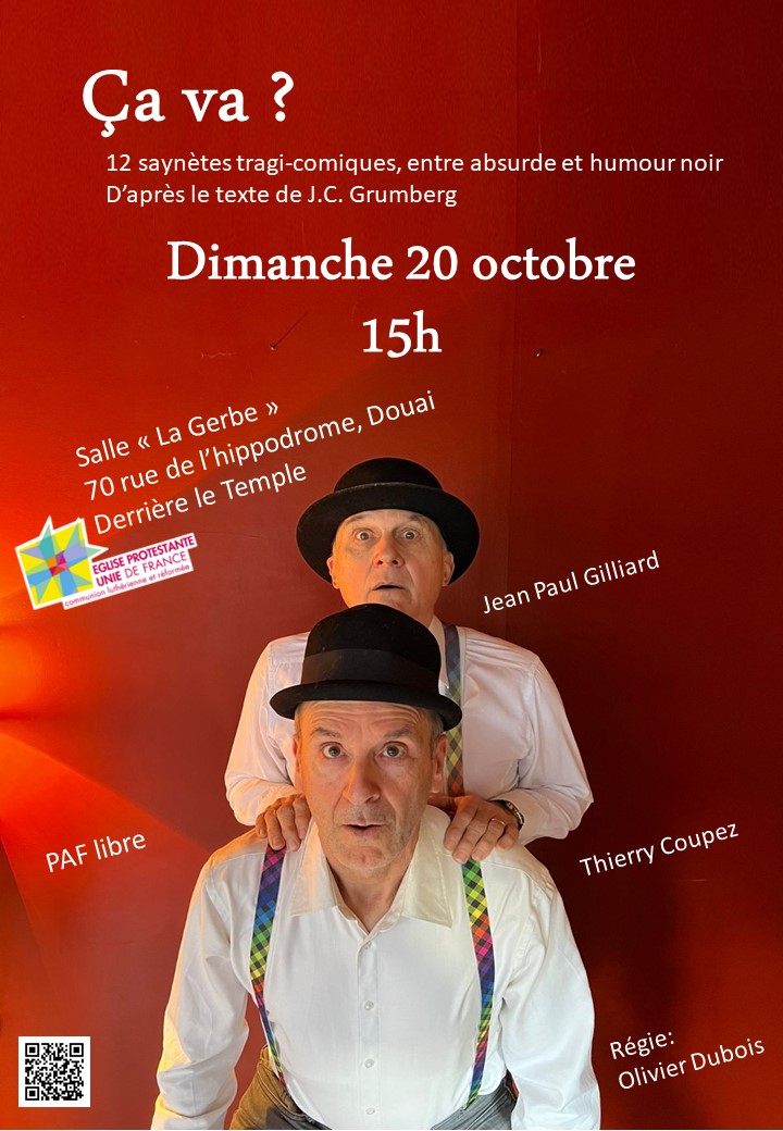 Nous vous proposons un spectacle de Jean-Paul Gilliard et Thierry Coupez: 12 saynètes tragi-comiques d’après le texte de J-C Grumberg, Venez Nombreux!!