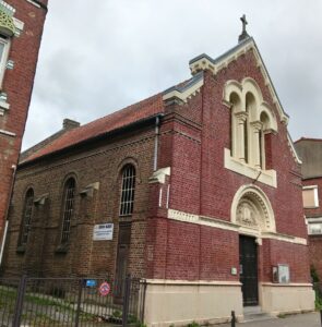 Le temple est d’une grande sobriété extérieure et intérieure. Les murs sont constitués de maçonnerie en briques de terre cuite rouge et d’un soubassement cimenté. La toiture du temple, probablement d’origine, est en tuiles de terre cuite rouge, celle de la sacristie en zinc. Dépouillé, il est pensé avant tout pour offrir un confort d’écoute optimal, sans distraction. Seul temple de l’Eglise Protestante Unie de France (EPUdF) du Douaisis, il accueille le culte les 1er, 3éme et 5éme dimanche du mois ainsi que les cérémonies de baptême, mariage et d’obsèques.